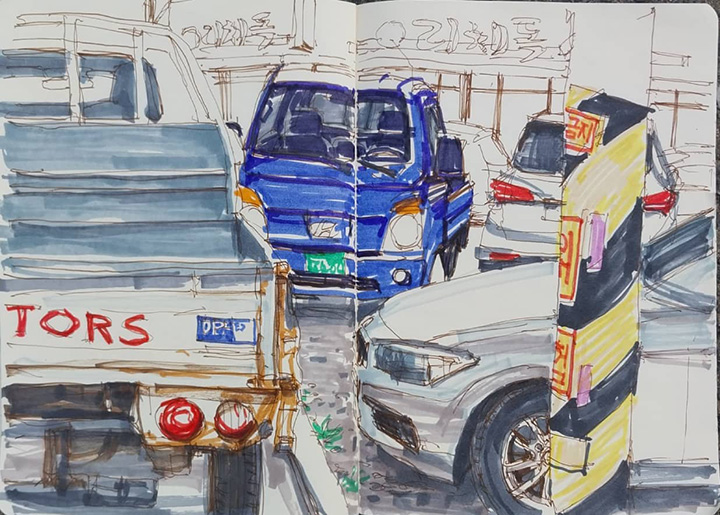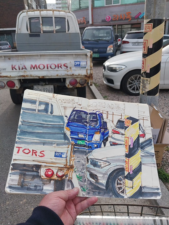 잠시 쉬었다가 다시 나가서 마커펜과 마커 작업을 했습니다.