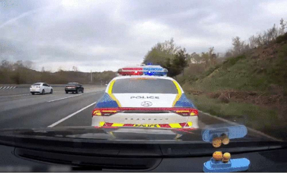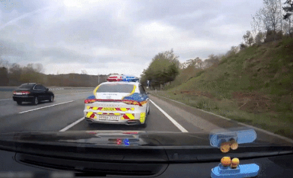100km 속도로 달리던 고장난 브레이크카에 불…고의로 들이받고 멈춰선 경찰차