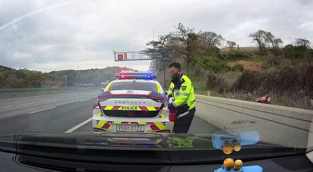작년 11충북지방경찰청 고속도로순찰대 비밀순찰차에 탄 고위 경찰 2이는 명명이 충북 보은군 당진-영덕고속도로 청주 방향 탄터널 인근 차량화재를 무시하고 지나쳤다며 비난을 받은 장면과 대비된다..
