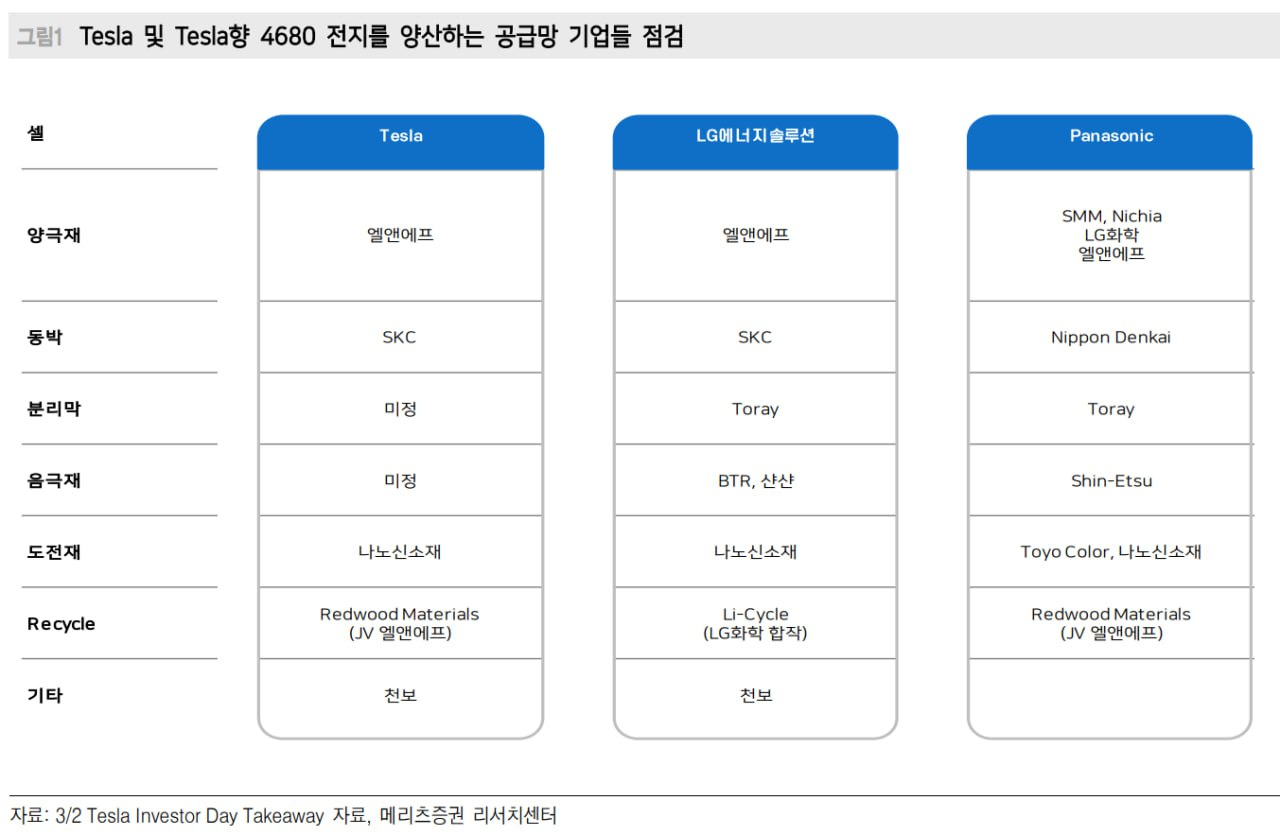 Tesla 4680 배터리 양산업체 Supply Chain